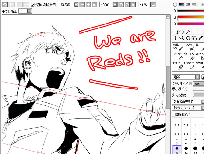 描くときにいつも聞いてるFMでたまたま浦和戦のCMやってたもんですから。