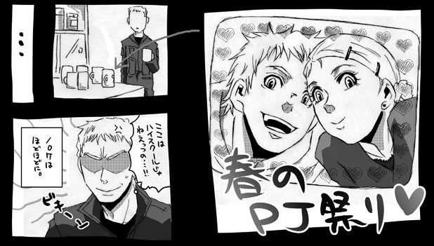 こうなったら何か楽しいことでも考えよう!ってことで某様が開催中のPJ祭りにこっそり参加してみようかと。わたくし絵板に描くのがどうも緊張してしまって苦手なのでこっちにあげます。PJ彼女を捏造したので「それはちょっと…」な方はご遠慮いただいた方がいいかも?あとおまけでおふざけ鬼神も。去年のクリスマス以上に自重してません。
